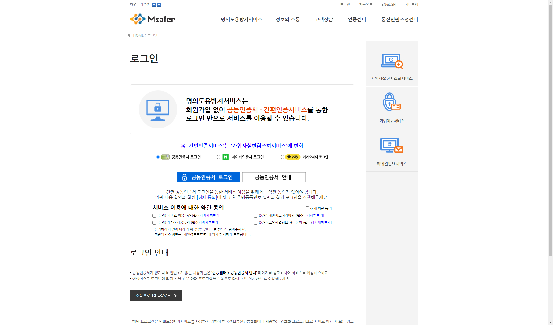 한국정보통신진흥협회에서 운영하는 Msafer 사이트입니다. 바로가기는 본문 하단에 있으니 참고해주세요..